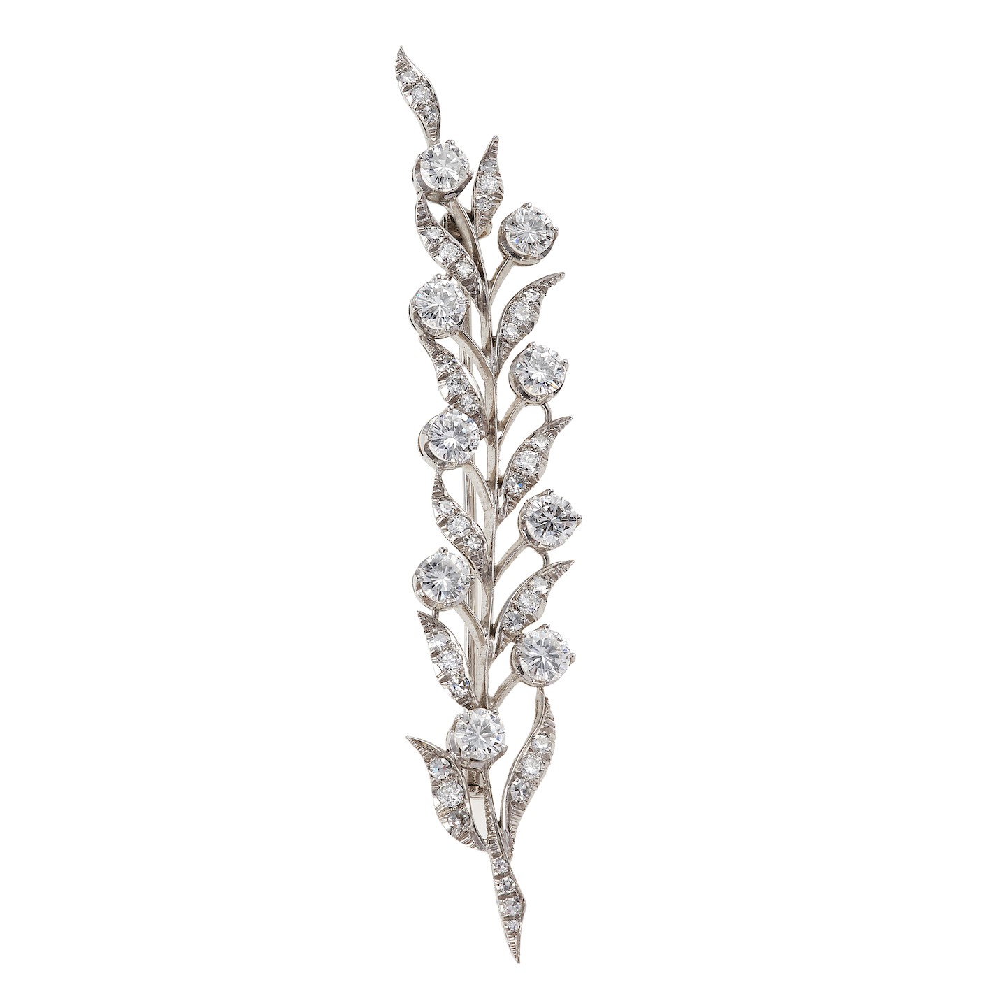 Spilla "rametto" con diamanti taglio brillante, montatura in platino, gr 10.0, cm 7.5