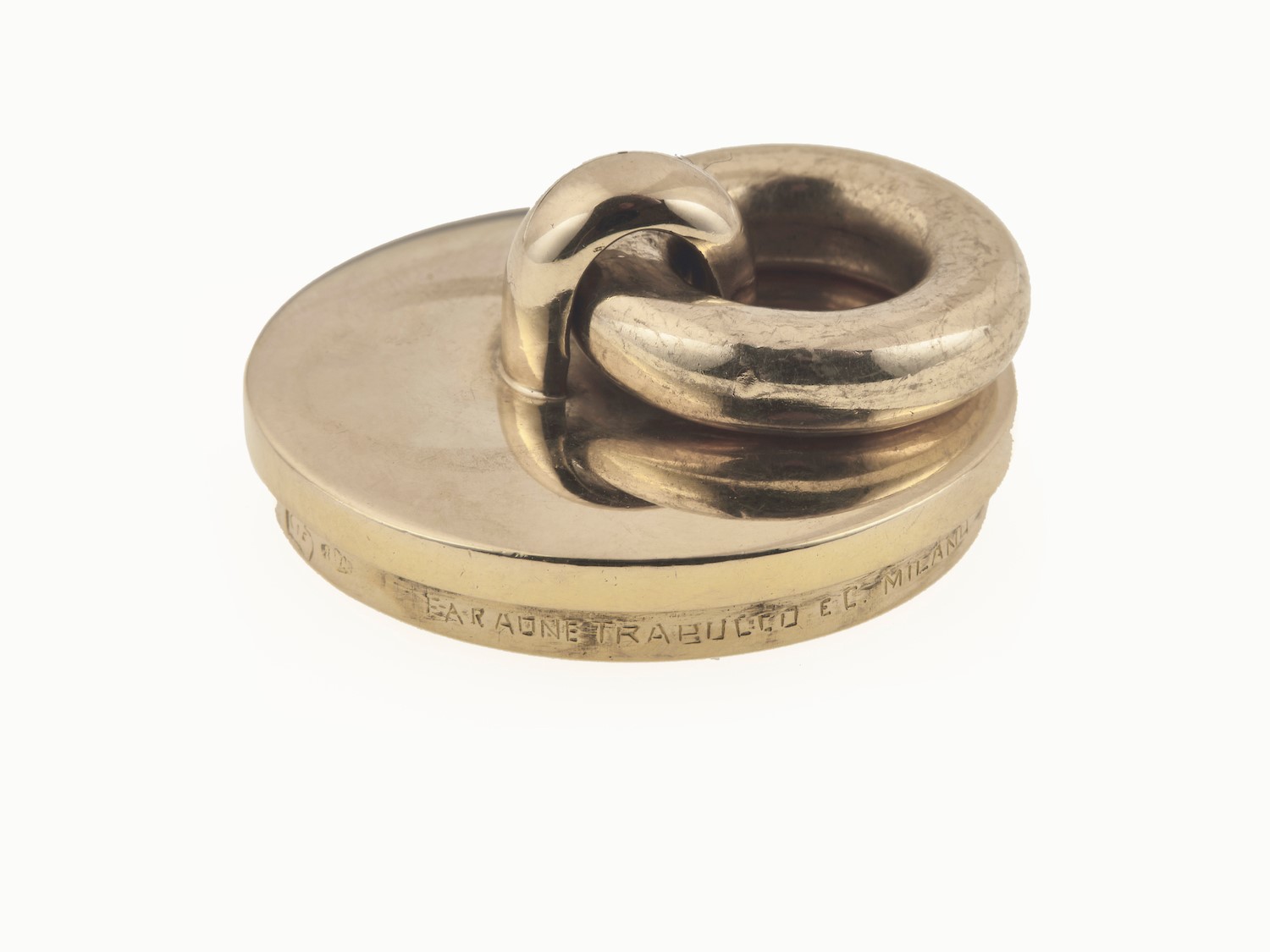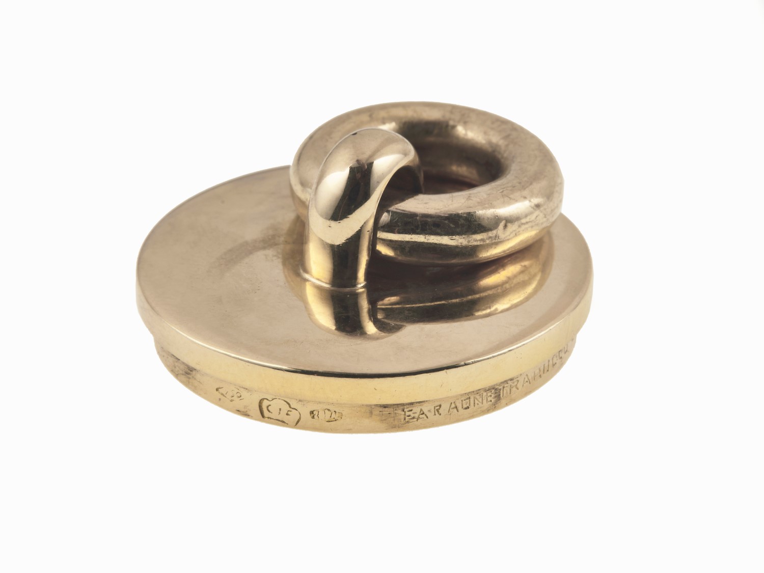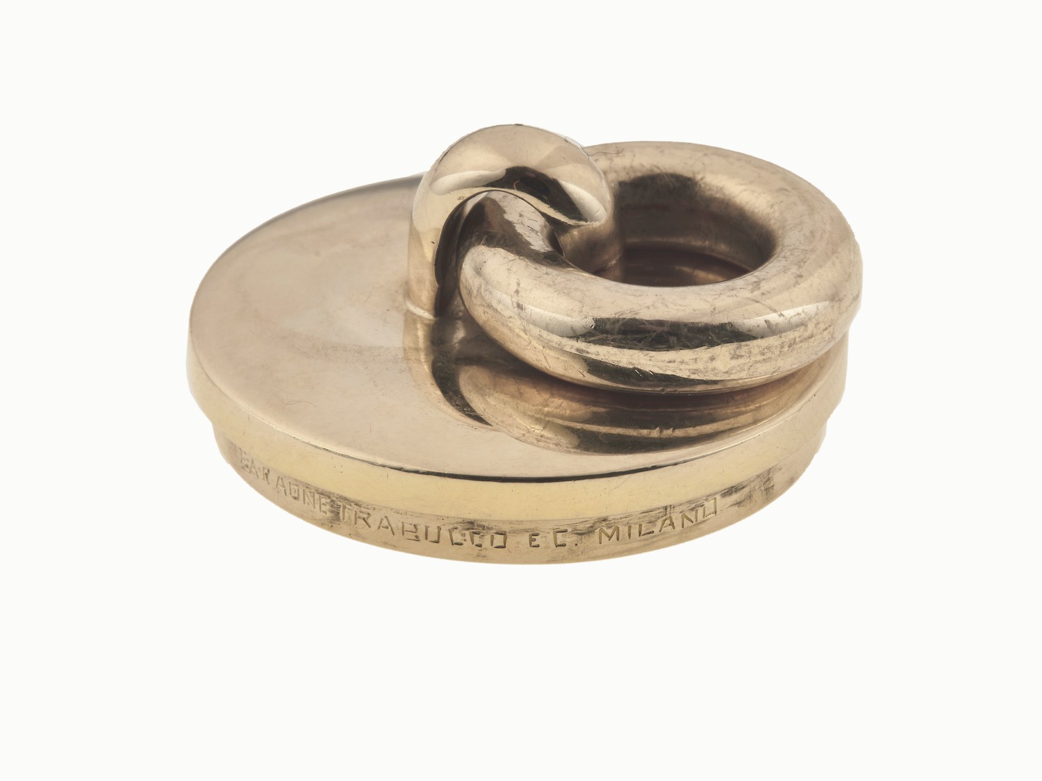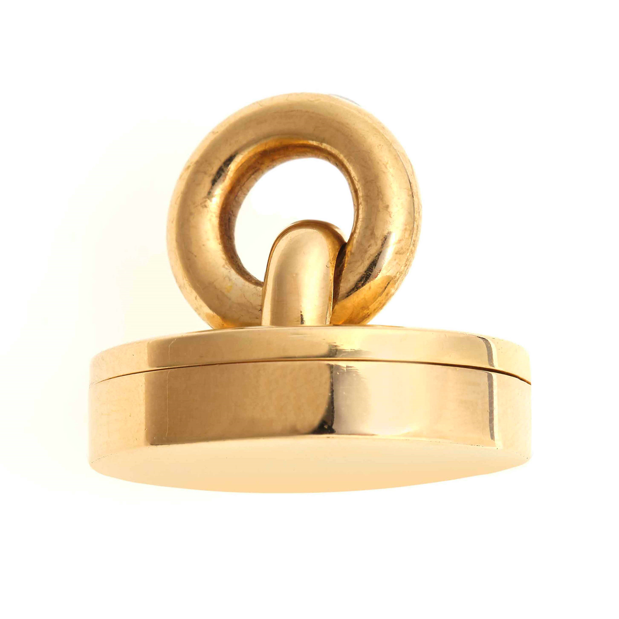Faraone Trabucco e C. Milano. Portapillole, oro giallo 750/1000, 700, gr 20,1, diametro cm 2,9 altezza contenitore cm 0,8