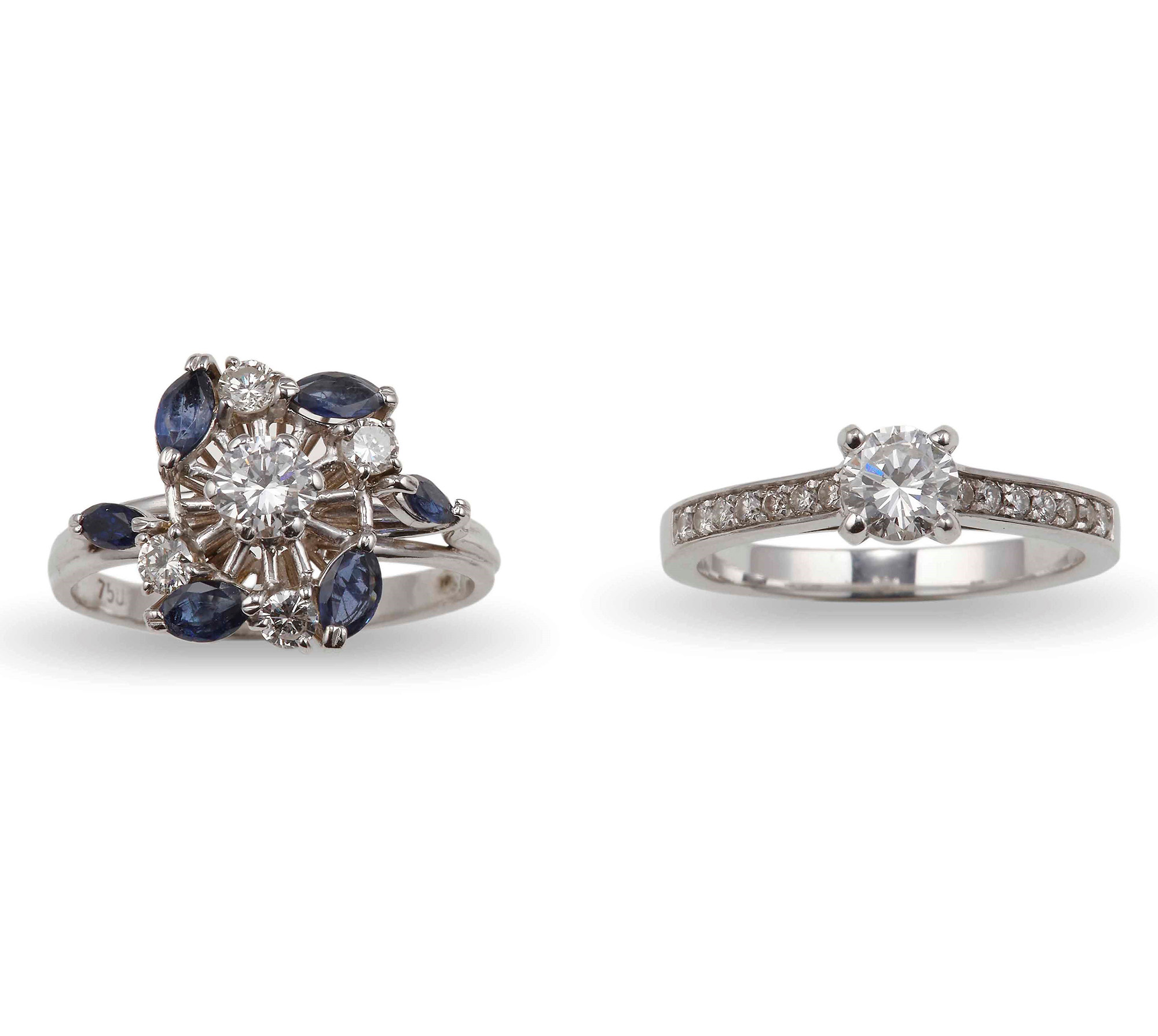 Lotto 612 | Coppia di anelli con diamanti e zaffiri