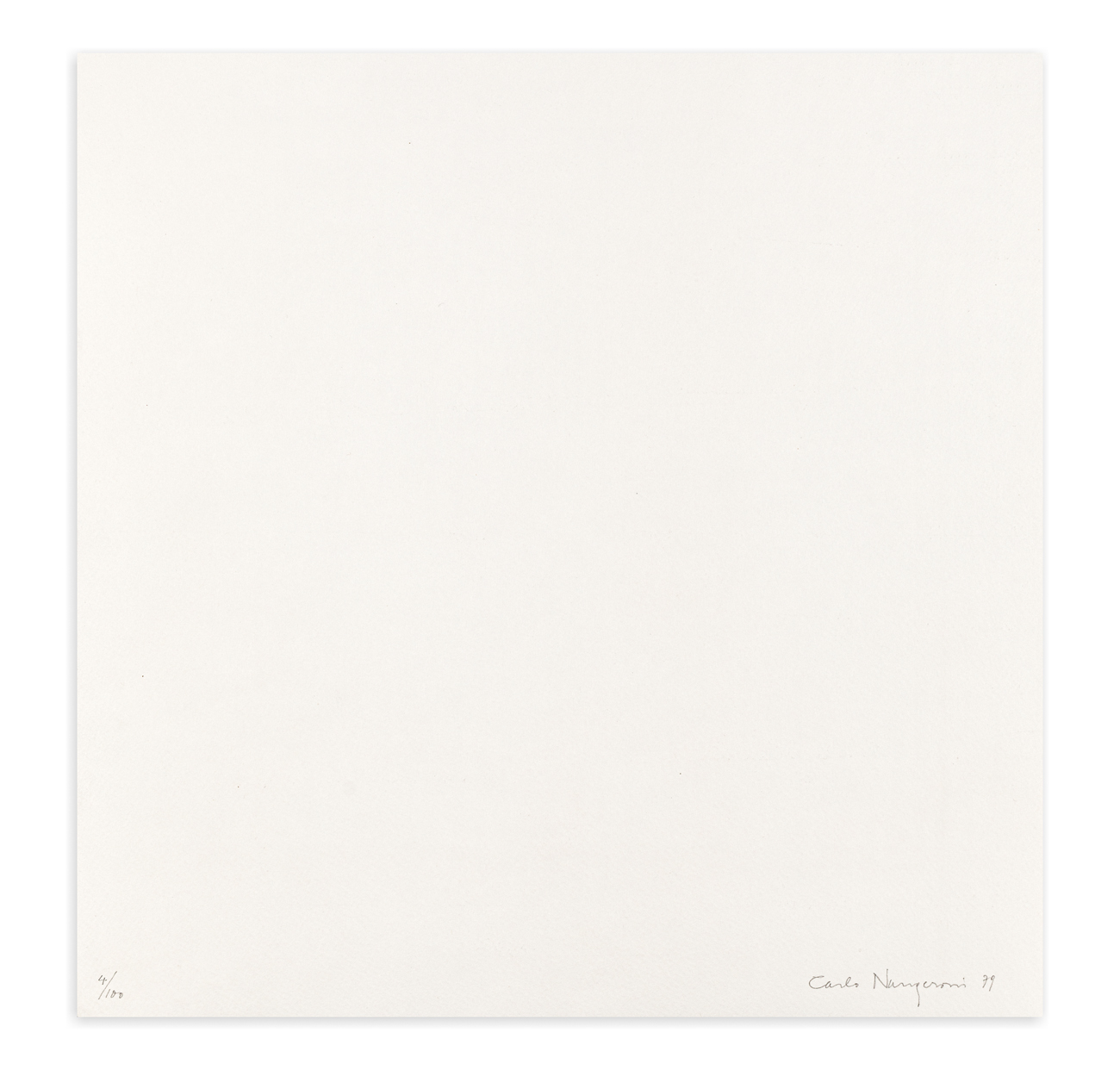 Cartella con testo introduttivo di Giancarlo Majorino e 4 serigrafie di Carlo Nangeroni, ciascuna recante firma, datazione e numerazione (Esemplari 4/100) a matita al retro