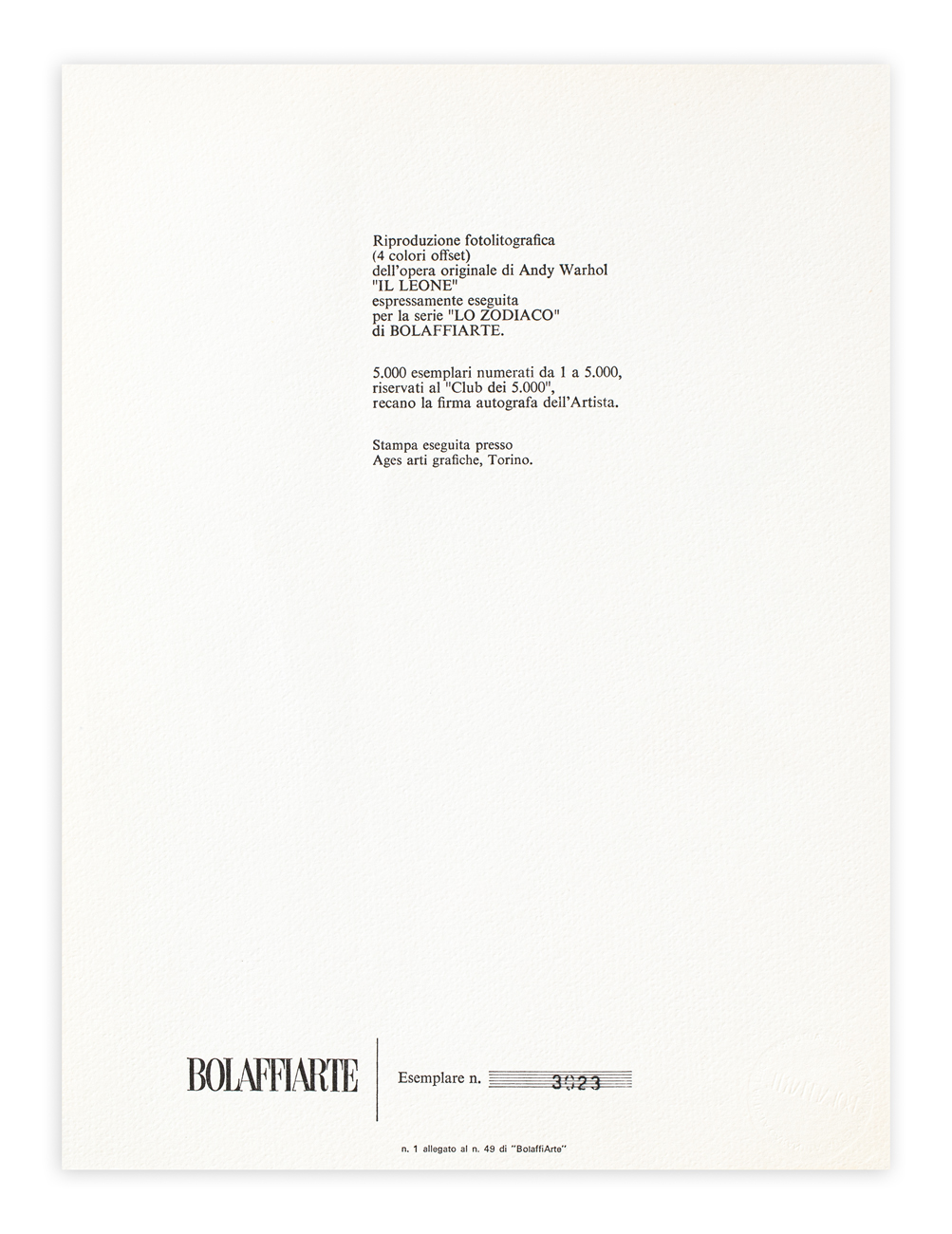 ANDY WARHOL - Il leone, Aprile - Maggio 1975