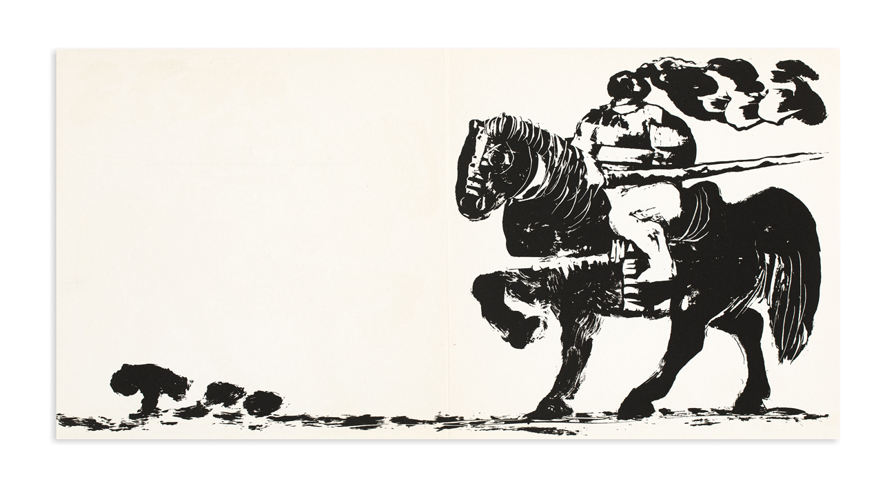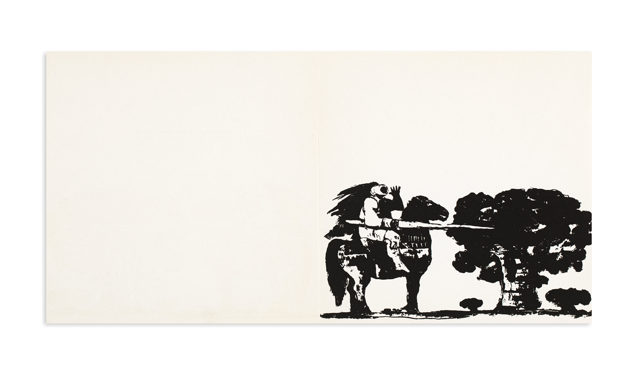Folder contenente 13 pieghevoli recanti testo tratto da una versione popolare siciliana de 'La Pazzia di Orlando' illustrato da stampe serigrafiche di Salvatore Fiume