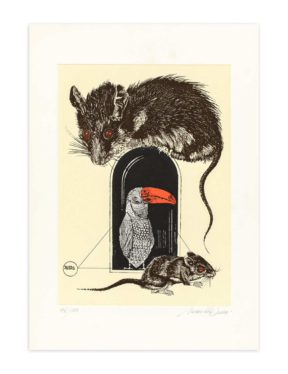 Firma e numerazione (Esemplare 46/100) a matita al fronte