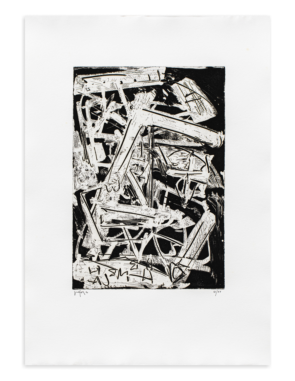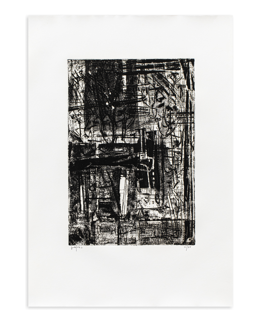 Cartella in plexiglass contenente 6 acqueforti originali di Emilio Vedova, ciascuna recante firma, datazione e numerazione (Esemplari VI/XV) a matita al fronte