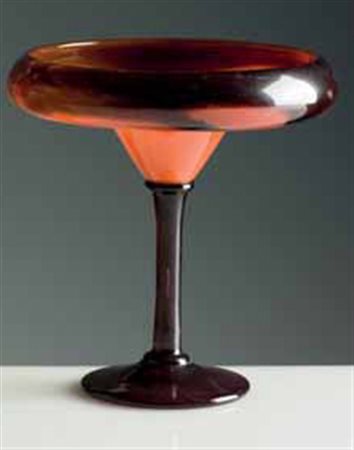 Schneider. Vaso a calice in vetro nei toni del bruno e arancione, 1925 circa. Firma incisa ad acido: Schneider altezza cm 17