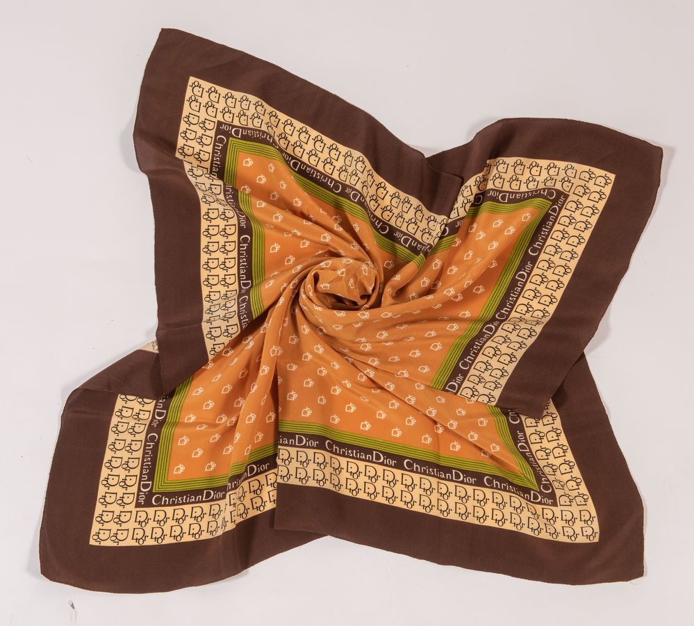 Lotto 61 | CHRISTIAN DIOR Foulard in seta sui toni del marrone e dell'arancione con...