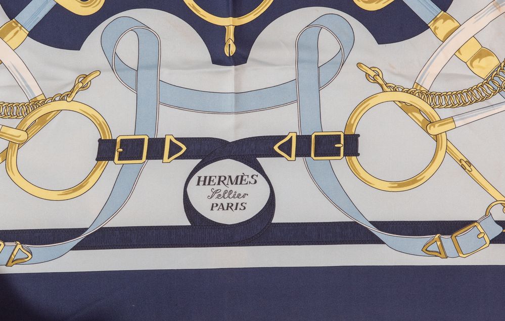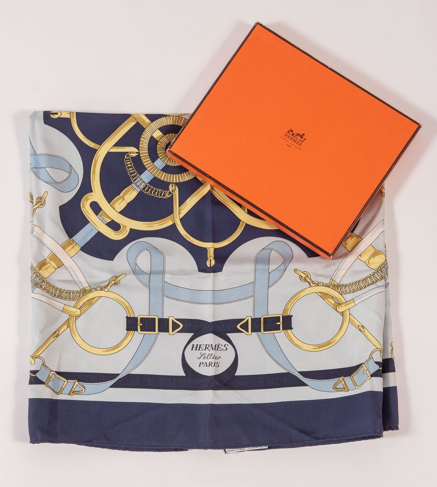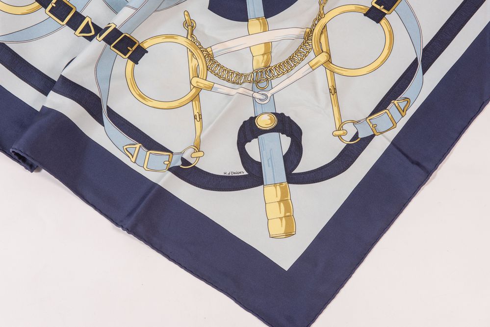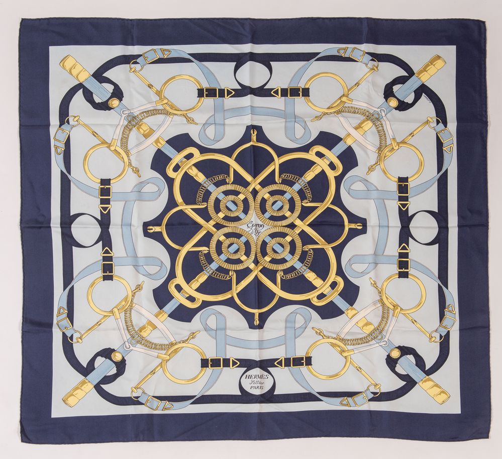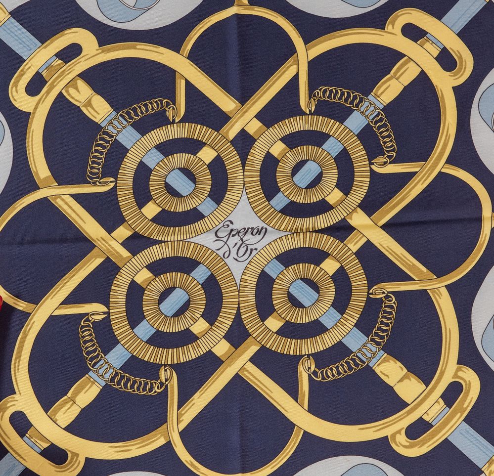 HERMÈS Foulard in seta "Eperon D'or" by Henri D' Origny. Cm 89x85....
