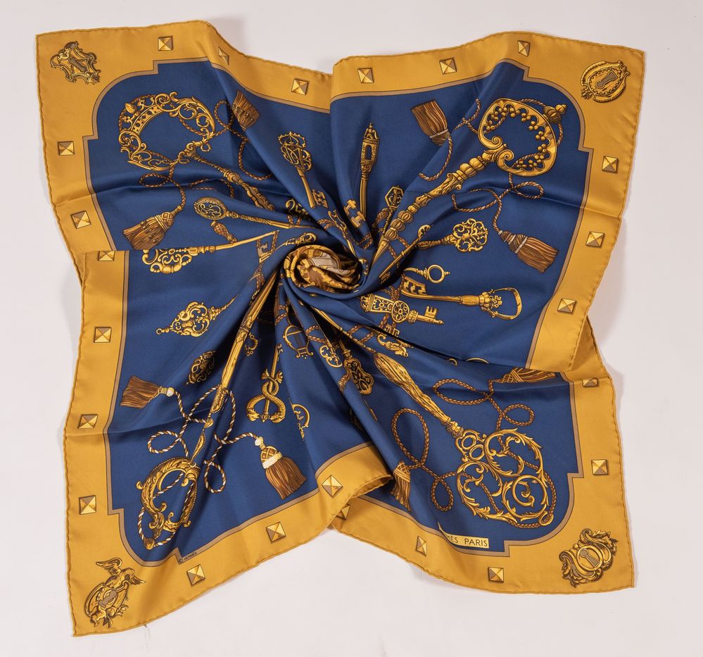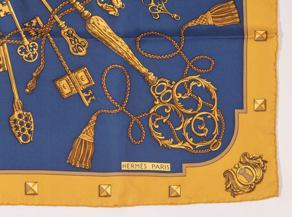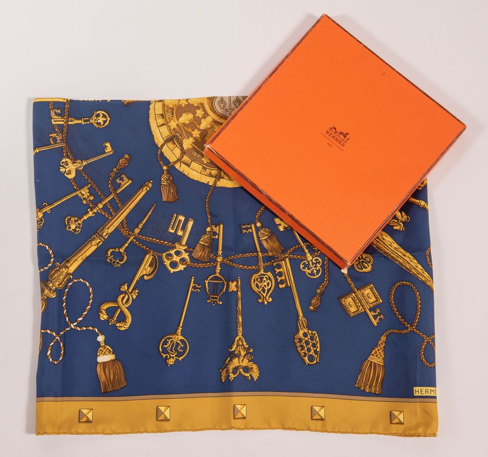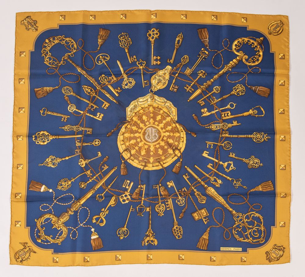 Lotto 82 | HERMÈS Foulard in seta "Les Clefs" by Caty Latham, 1980. Cm 89x87. Reca firme...