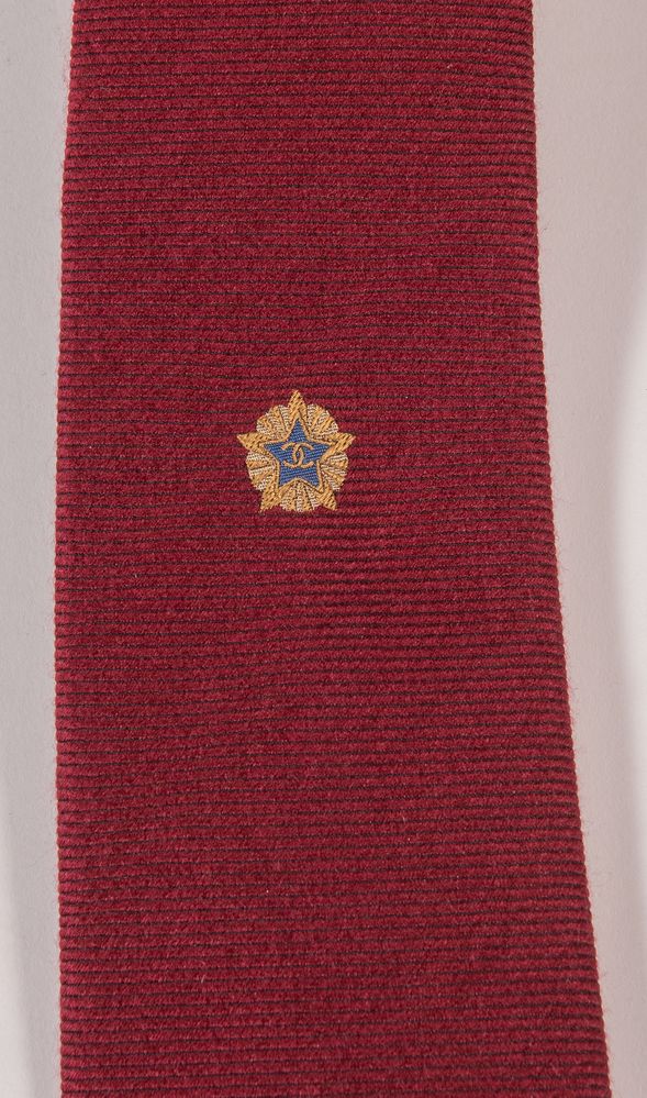 Lotto 88 | CHANEL Cravatta in seta e lana bordeaux con catenella in metallo sul retro....