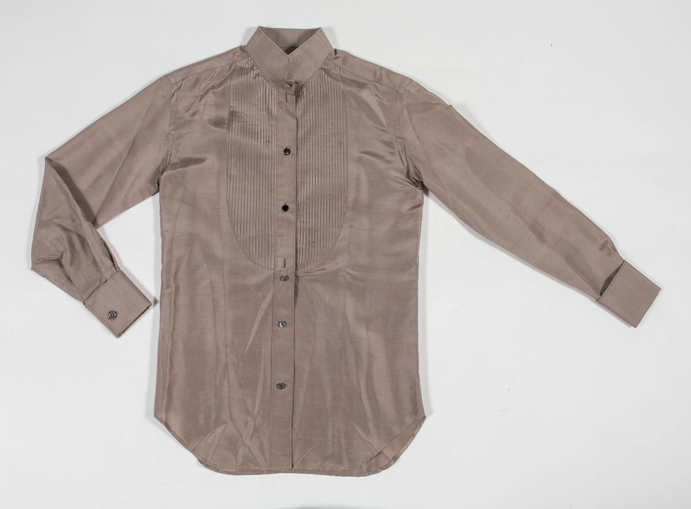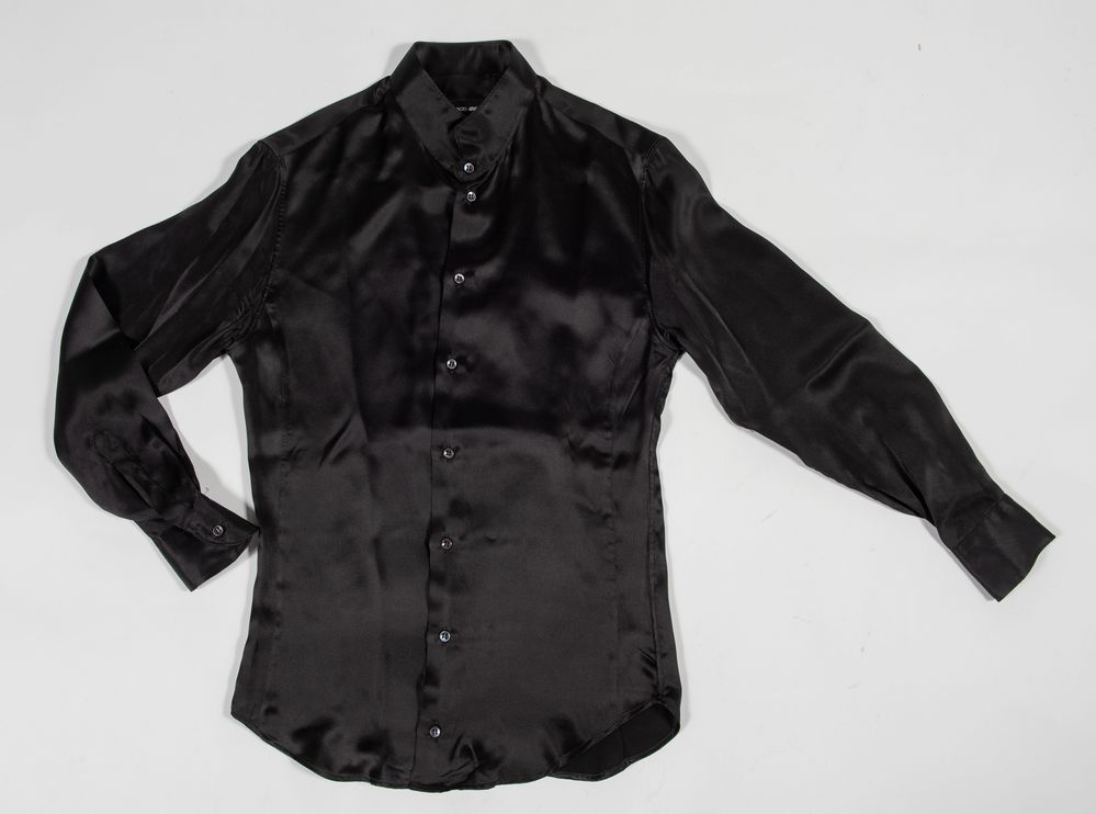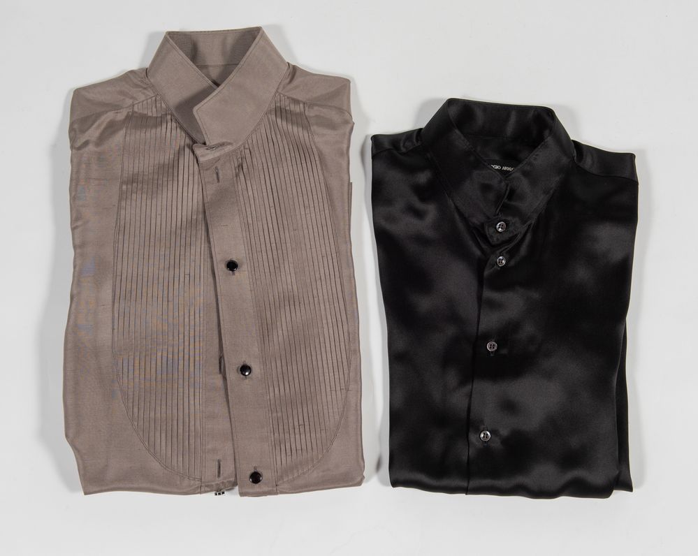 GIORGIO ARMANI Lotto composto da due camicie in seta sui toni del tortora e del nero. Riportano taglie 38 e 41. Recano etichette Giorgio Armani e Giorgio Armani Made in Italy.