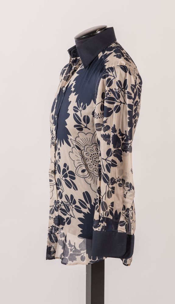DOLCE&GABBANA Camicia in cotone a fantasia floreale sui toni del blu e del bianco. Riporta taglia 37. Composizione: 100% cotone. Reca etichetta Dolce & Gabbana Made in Italy.