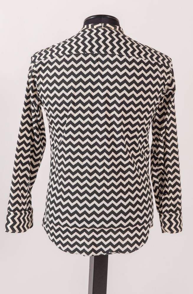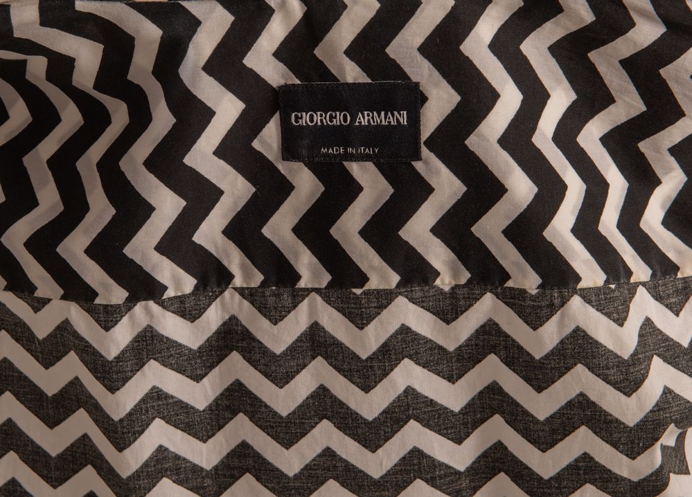 GIORGIO ARMANI Camicia in cotone a righe bianche e nere. Riporta taglia 38. Reca marchi Giorgio Armani Made in Italy. (Lievi mancanze)