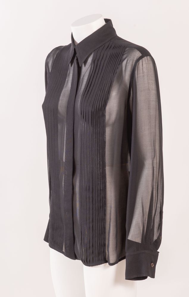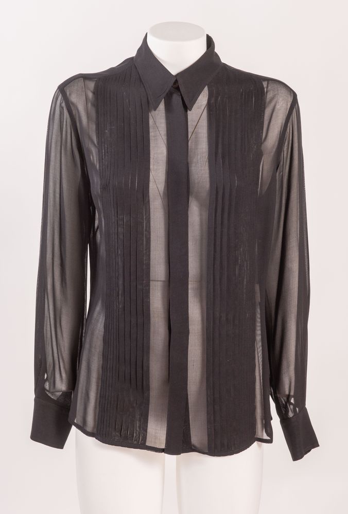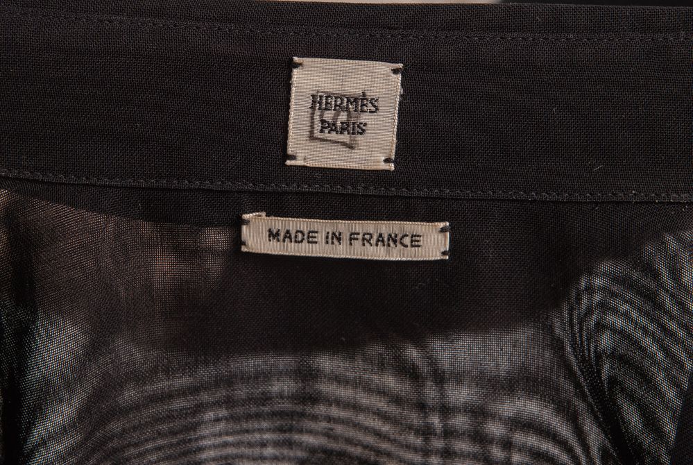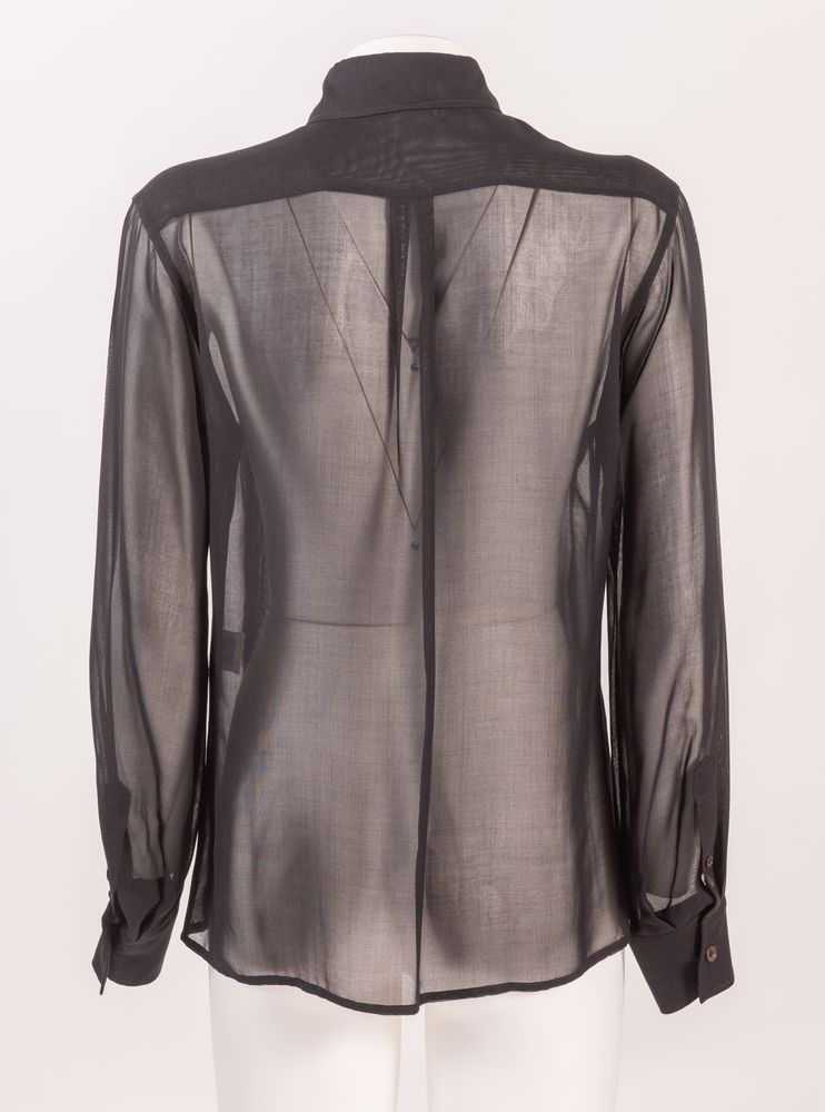 HERMÈS Camicia in seta semitrasparente nera. Riporta taglia 38. Composizione 100% seta. Reca etichetta Hermès Paris Made in france.