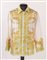 GIANNI VERSACE Camicia in seta con fantasia a greche e a fiori sui toni del verde, giallo e bianco. Anni '90 ca. Riporta taglia 46. Reca etichetta Gianni Versace Made in Italy.