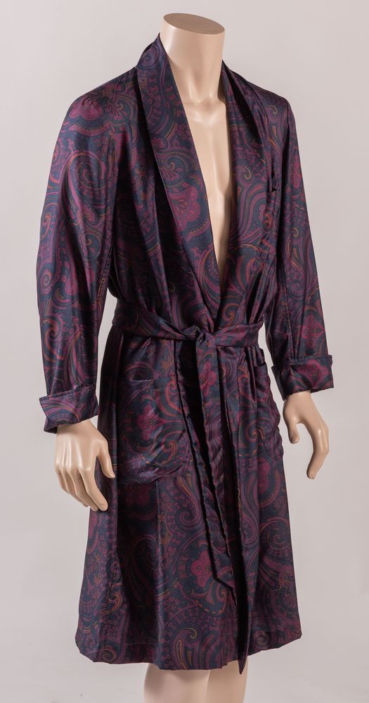 ERREDIECI Vestaglia in seta con cintura con motivo cachemire sui toni del...