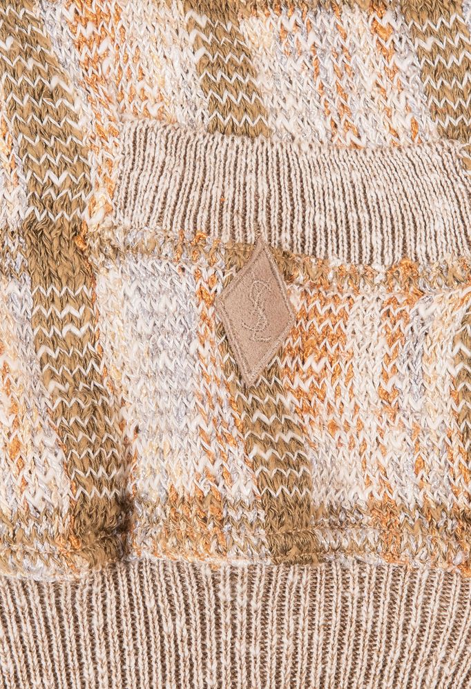 YVES SAINT LAURENT Tricots pour homme Cardigan in lino e cotone sui toni del beige con bottoni madreperlati. Riporta taglia 6. Composizione: 37% cotone, 32% viscosa, 21% lino, 10% altre fibre. Accompagnato da cartellino originale con dettagli e specifiche del prodotto.
