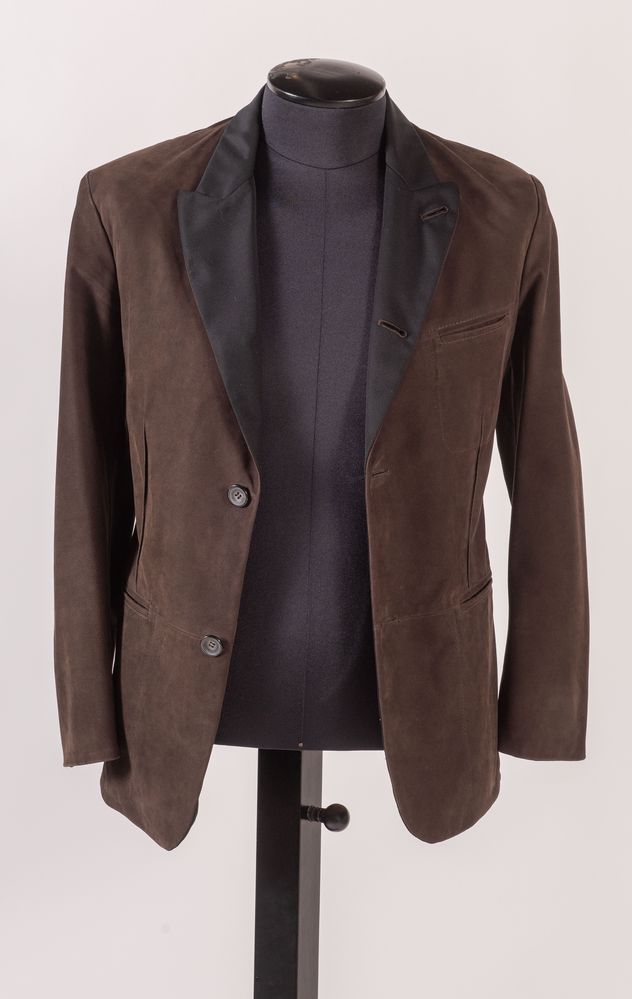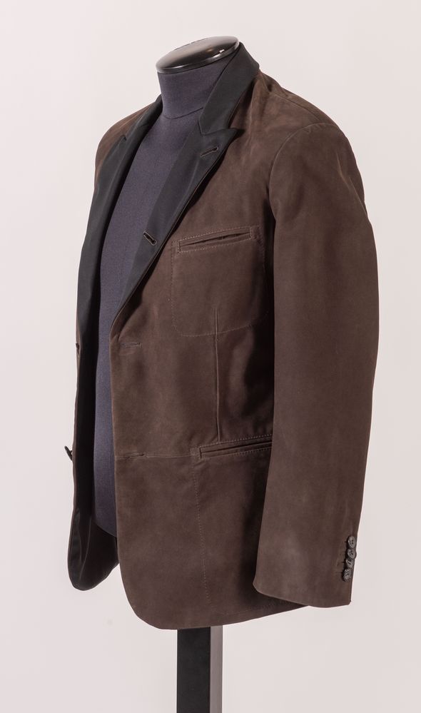 GIORGIO ARMANI Giacca in pelle scamosciata marrone con dettaglio del colletto...