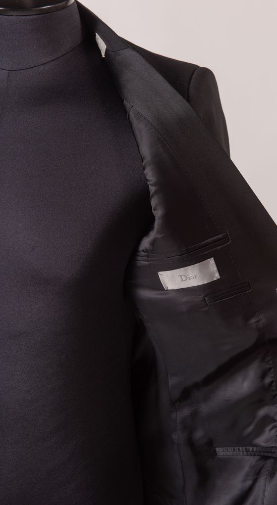 DIOR Giacca in lana sui toni del nero. Riporta taglia 46. Interno rifinito in tessuto nero. Composizione esterno: 100% lana. Composizione interno: 100% cupro. Reca etichetta Dior Paris.