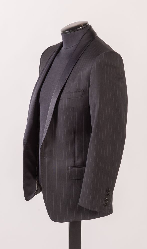 DOLCE&GABBANA Giacca in lana e seta gessata sui toni del nero. Riporta taglia...