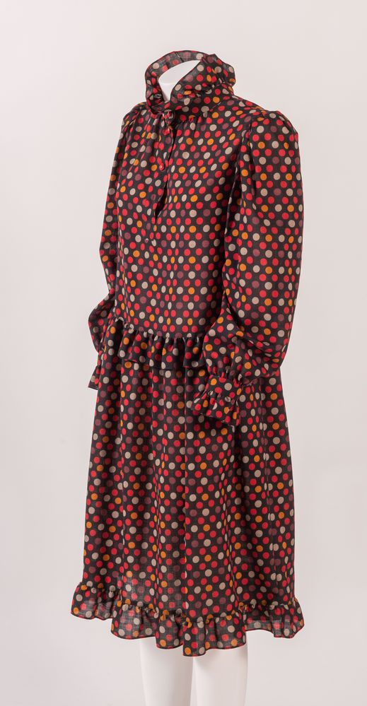YVES SAINT LAURENT Variation Abito in cotone a pois sui toni del nero, rosso...