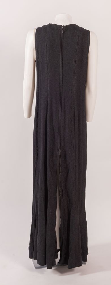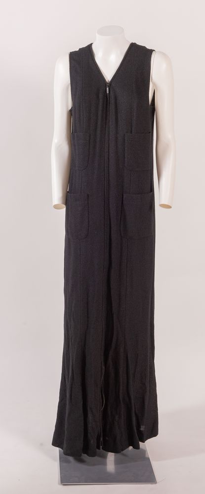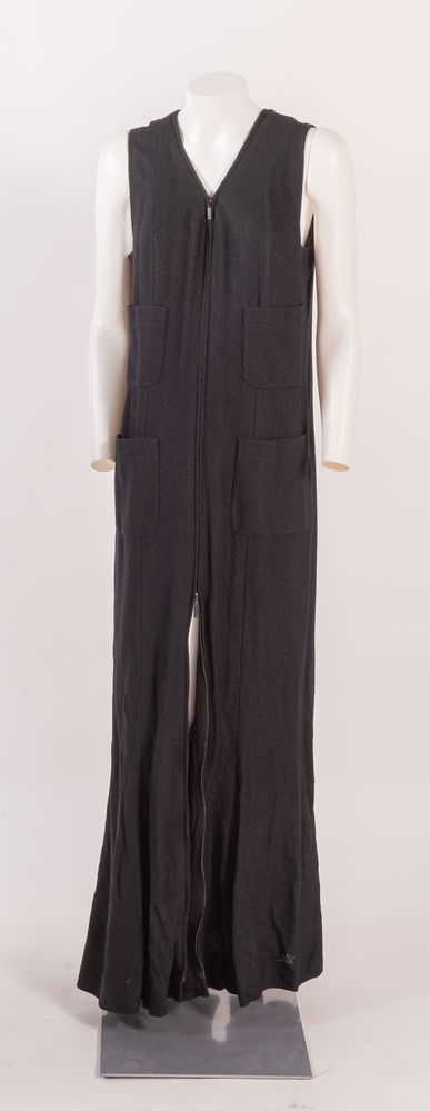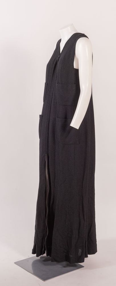 CHANEL Abito lungo in cotone lavorato nero con apertura regolabile con zip in...