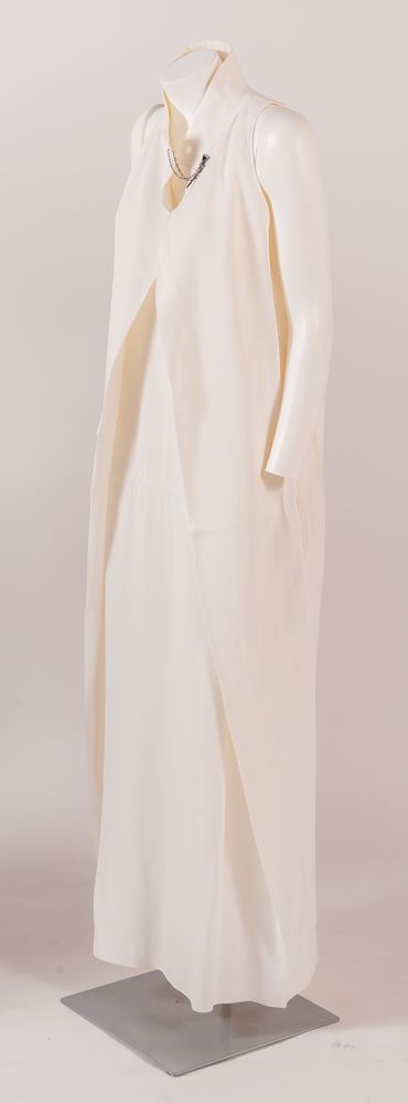 Lotto 238 | HERMÈS Abito lungo smanicato in seta bianca con dettaglio della chiusura sul...