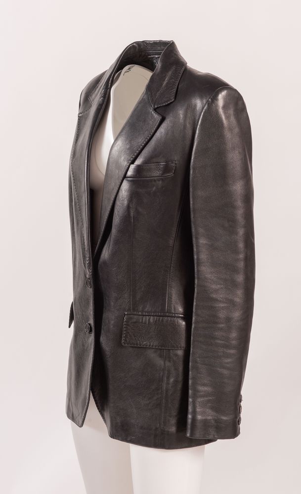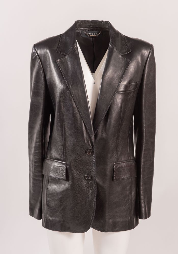 GUCCI Giacca in pelle nera. Riporta taglia 46. Interno rifinito con fodera...