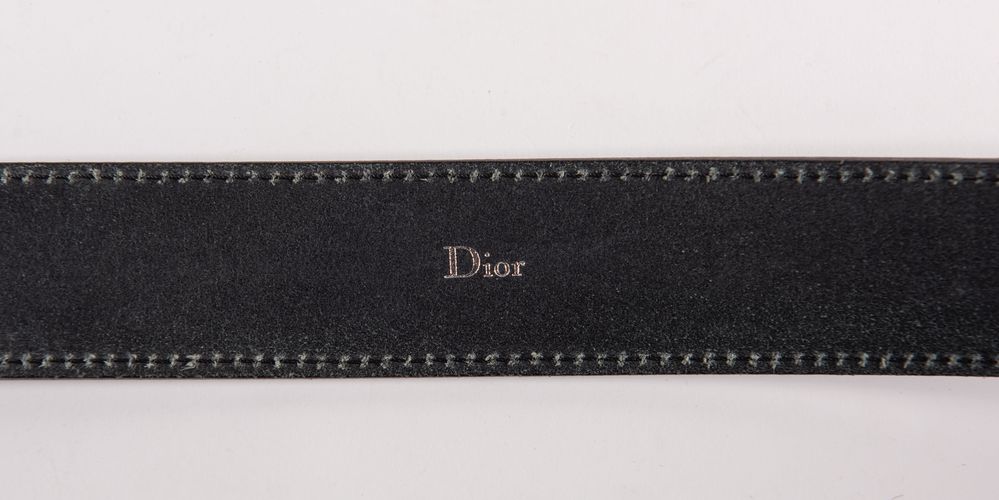 DIOR Cintura in pelle nera con fibbia in metallo argentato. Lunghezza totale:...