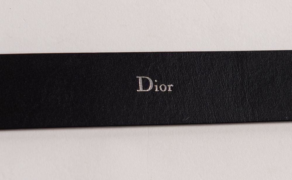 DIOR Cintura in pelle nera con fibbia in metallo argentato. Lunghezza totale:...