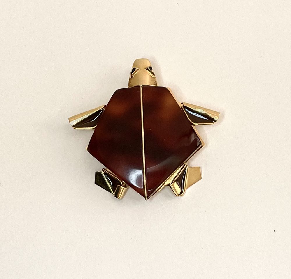 Lotto 344 | BORBONESE Spilla a forma di tartaruga in metallo dorato con corpo realizzato...