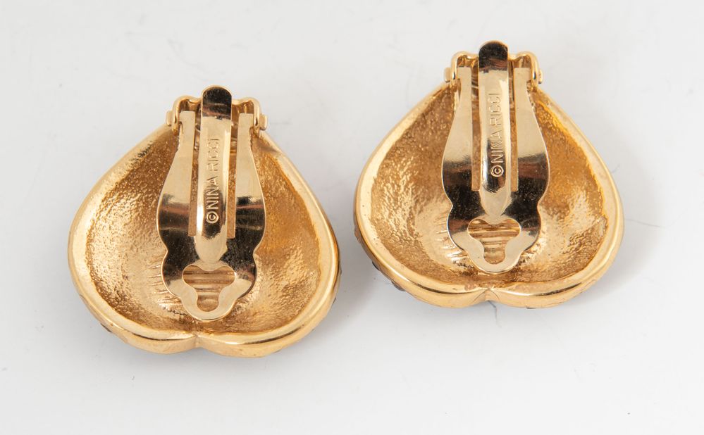 NINA RICCI Orecchini a clip a forma di cuore in metallo dorato decorati da...