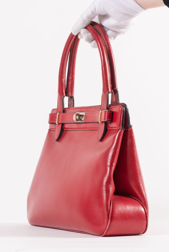 GUCCI Borsa da spalla in pelle rossa con dettagli in metallo dorato. Cm...