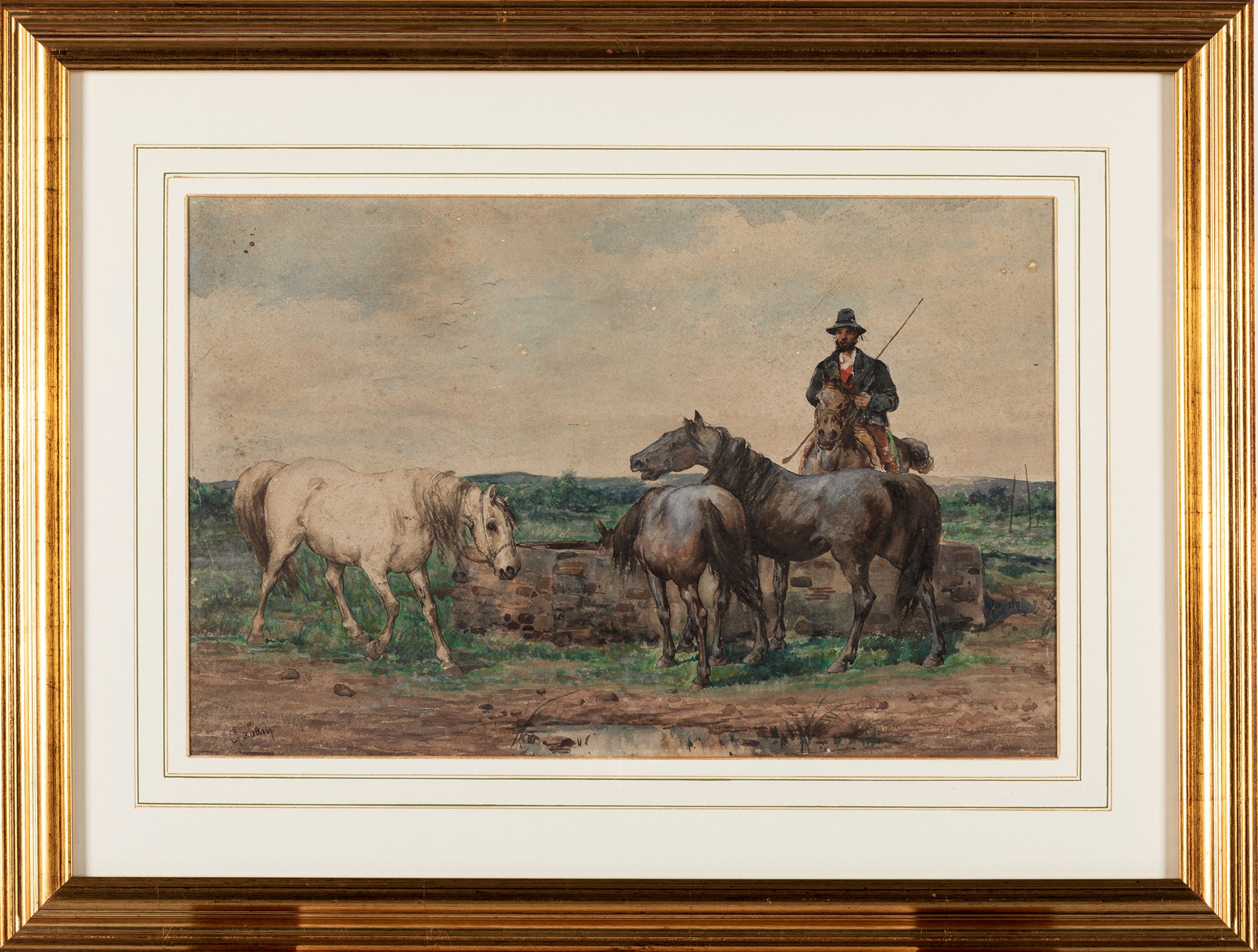 Giuseppe Gabani (Senigallia 1846-Roma 1900) - Cavalli nella Campagna romana