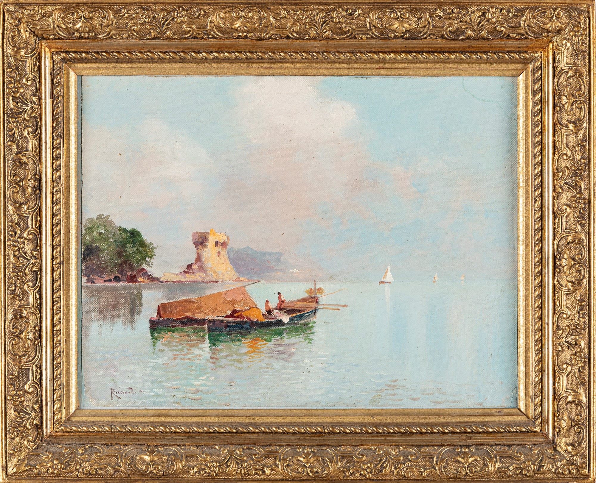Oscar Ricciardi (Napoli 1864-1935) - Marina con pescatori