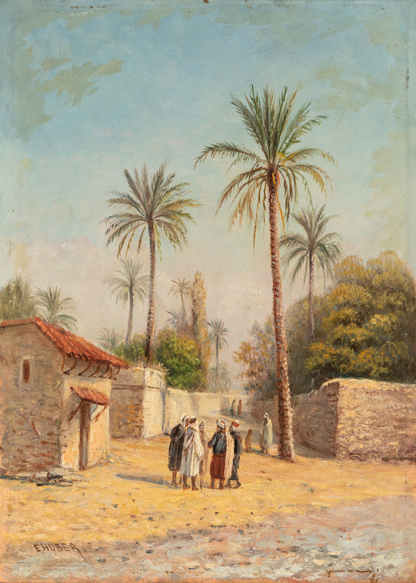 Ernst Huber (Vienna 1895-1960) - Biskra, chiacchiere sotto le palme