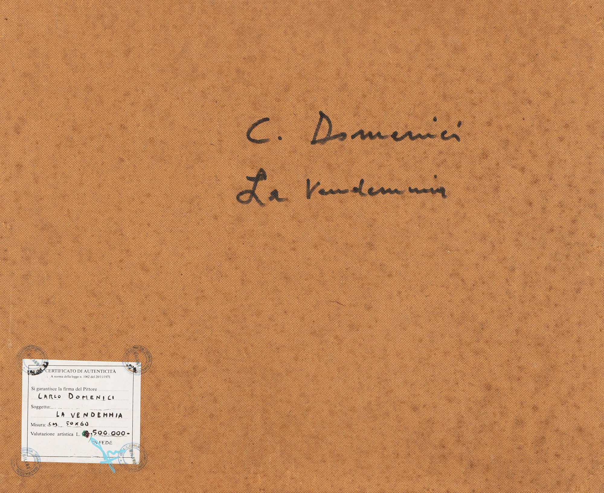 Sul retro, firma e titolo di mano dell'artista.