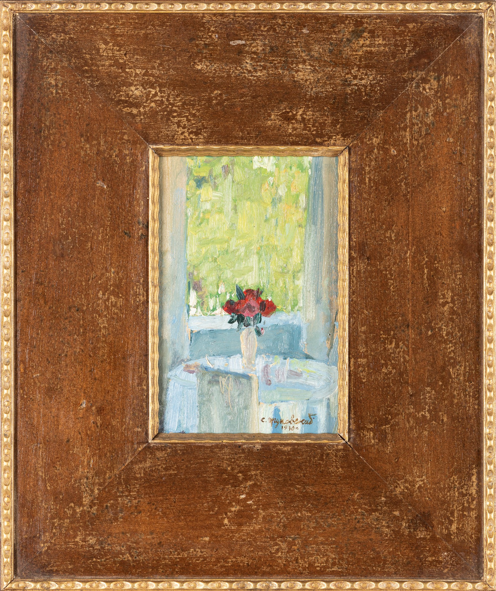 Stanislav Yulianovich Zhukovsky (Endrichovici 1874-Pruskov 1944) - Interno con vaso di fiori, 1930