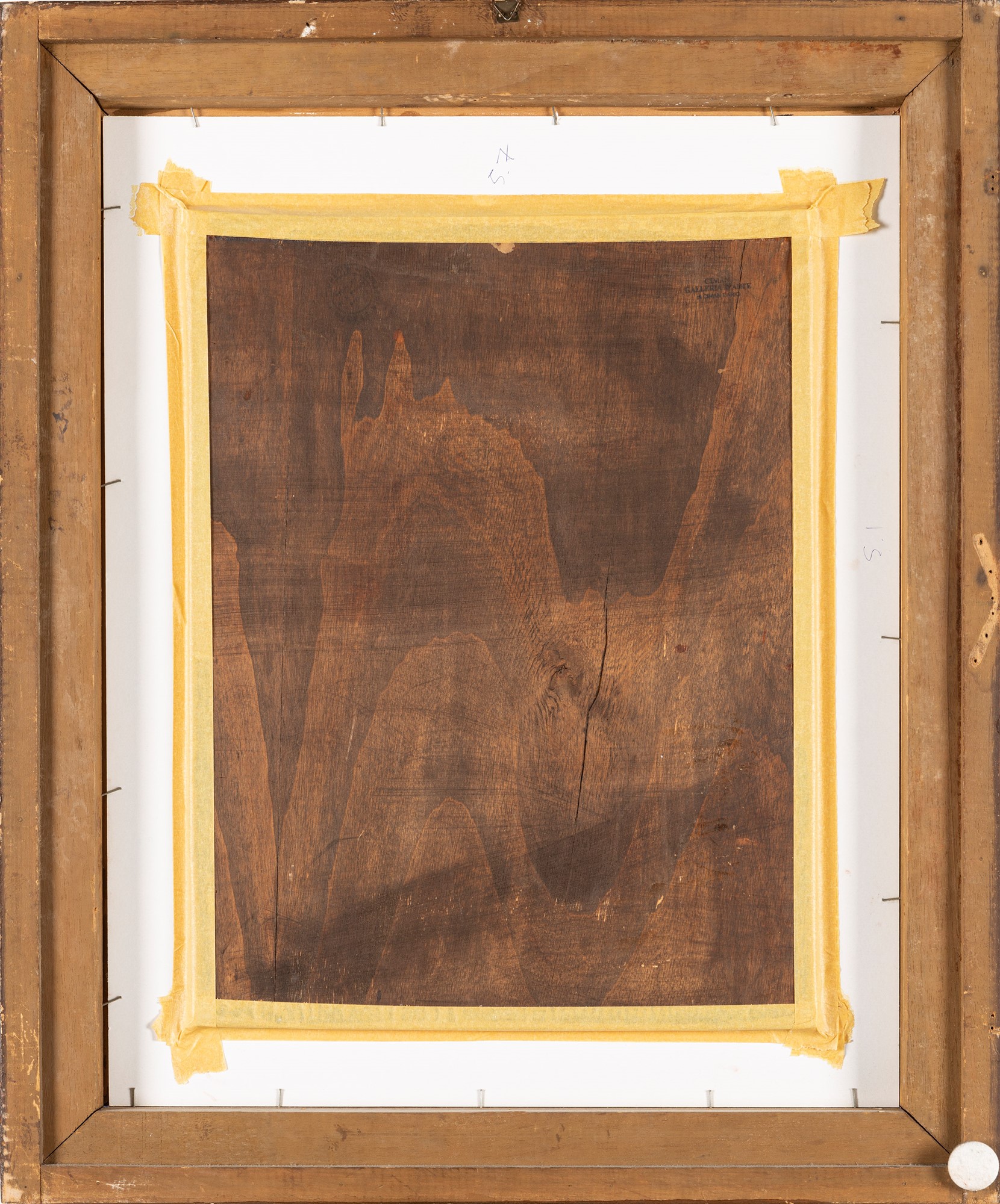 Sul retro, sulla tavola, timbro Galleria Bergamini, Milano e timbro Galleria d'Arte / Dario Ciman.