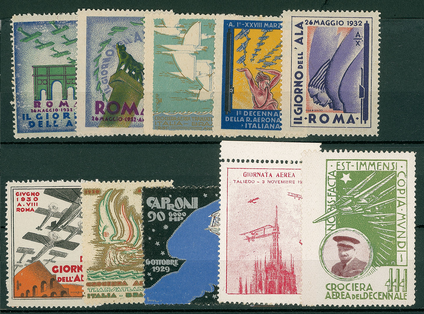 LOTTI VOLUMINOSI - ERINNOFILI - Aviazione - 10 vignette su cartoncino a listelli - da esaminare