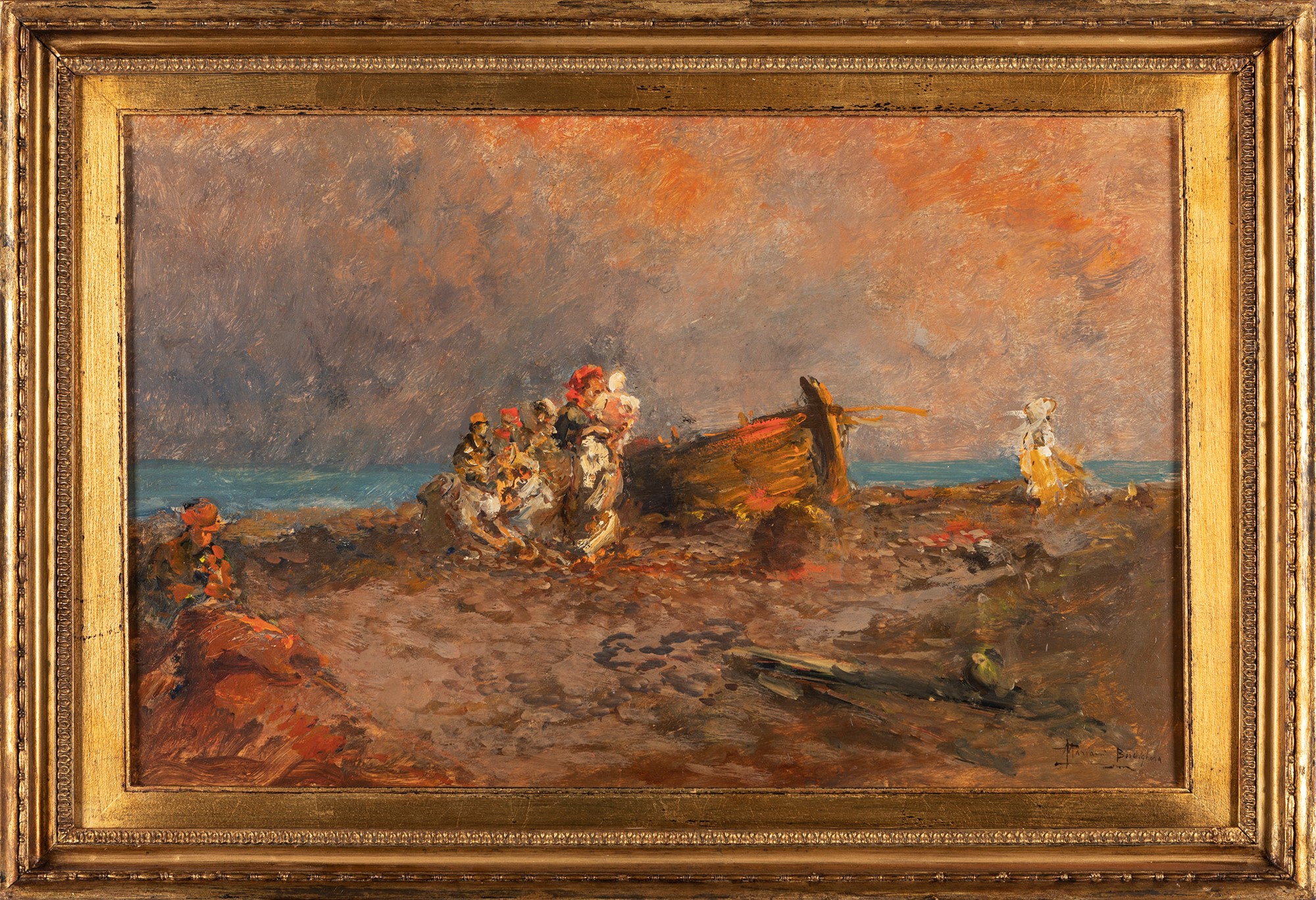 Pompeo Mariani (Monza 1857-Bordighera 1927) - Spiaggia a Bordighera