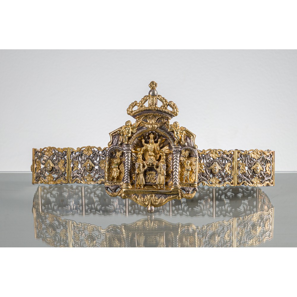 Cintura da sposa "Brezi" in argento e vermeil inciso e sbalzato con al centro Madonna in trono col Bambin Gesù ed angeli.