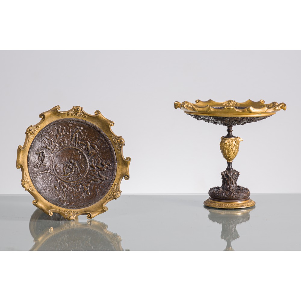 Coppia di alzate Napoleone III in bronzo dorato e brunito.