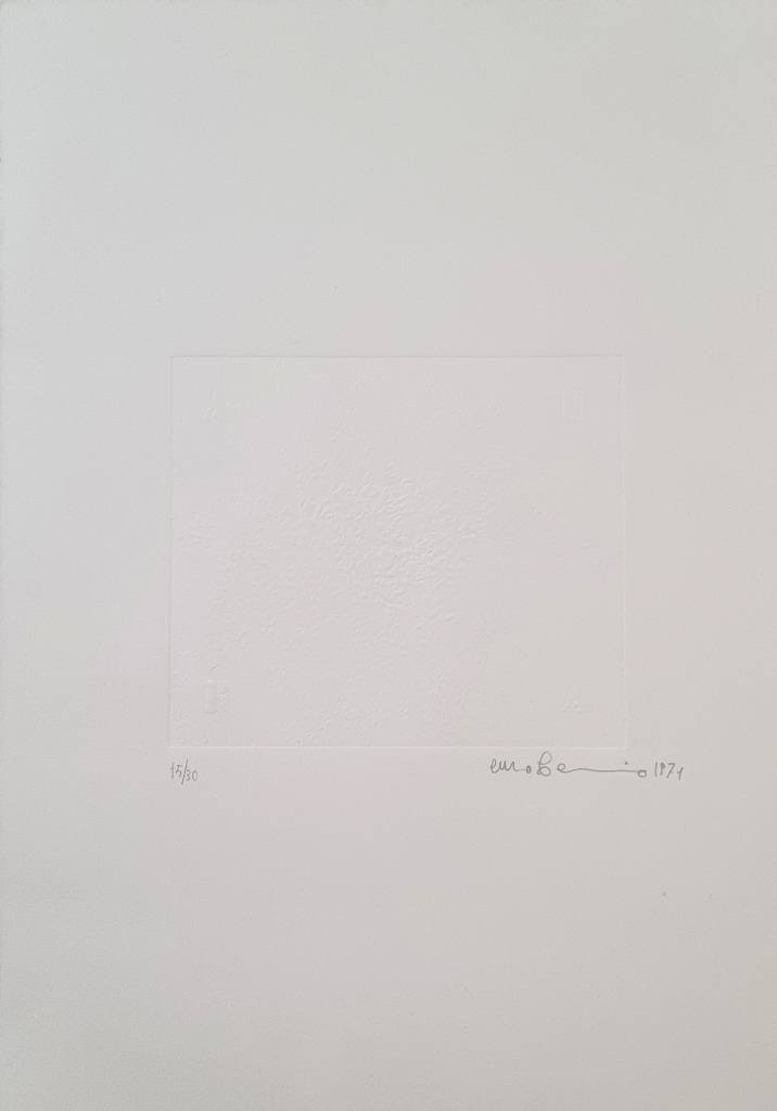 BERSEZIO ENZO Lesegno 1943 "Senza titolo" incisione su carta battuta cm 17,7x20,3 su foglio cm 50x35,5 del 1971. Firmata e datata sul fronte in basso a destra, tiratura 15/30 a sinistra.