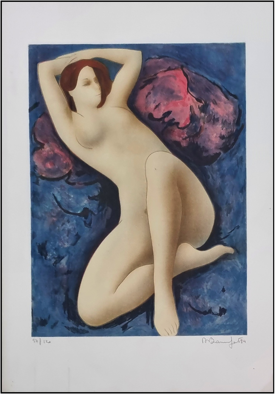 BONNEFOIT ALANIN Parigi 1937 "Nudo sdraiato” litografia cm 50x70 del 1984.. Firmata e datata sul fronte in basso a destra, tiratura 57/120 a sinistra. Certificato di garanzia a cura di Edizioni d’arte Vasciarelli.