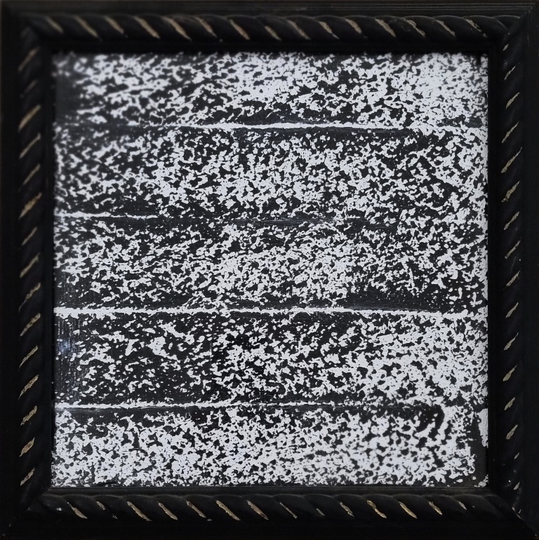 PENGO RENATO Padova 1943 "Shock" olio su tela cm 30x30 del 1990. Al retro titolo, firma e data. Archivio delle opere di Pengo a cura della Galleria d'arte Vecchiato.