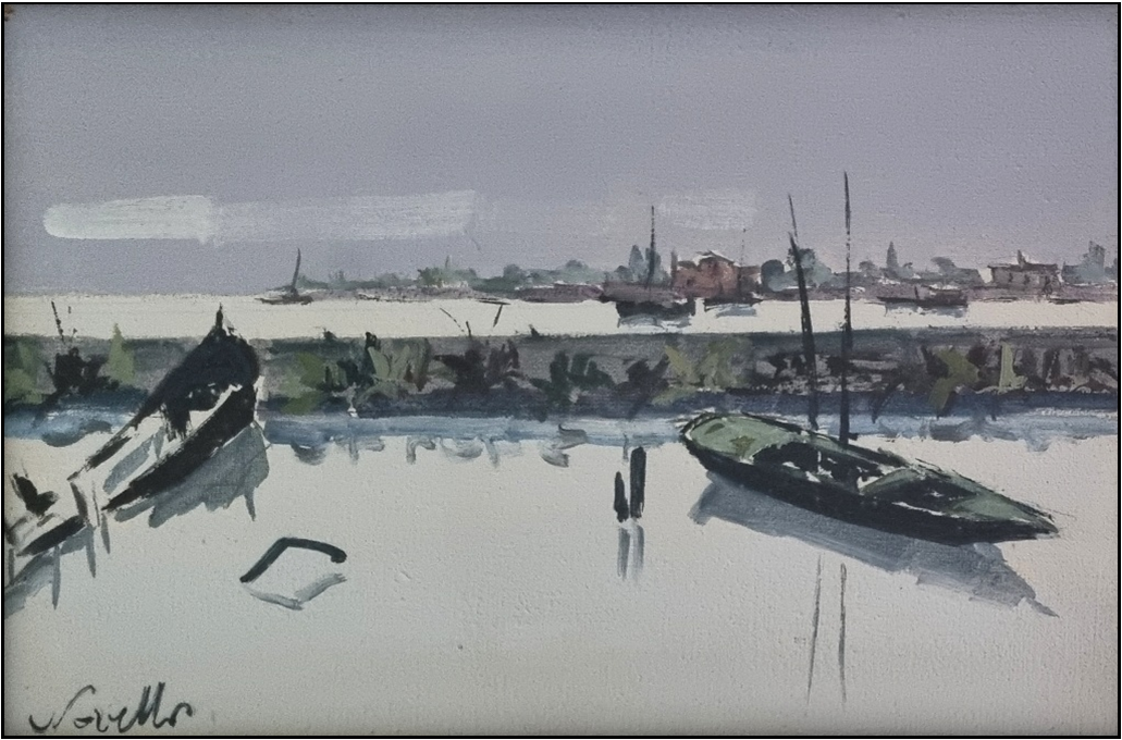 NOVELLO GIANCARLO Burano 1945 "Senza titolo" olio su tela cm 30x20. Firmato sul fronte in basso a sinistra.