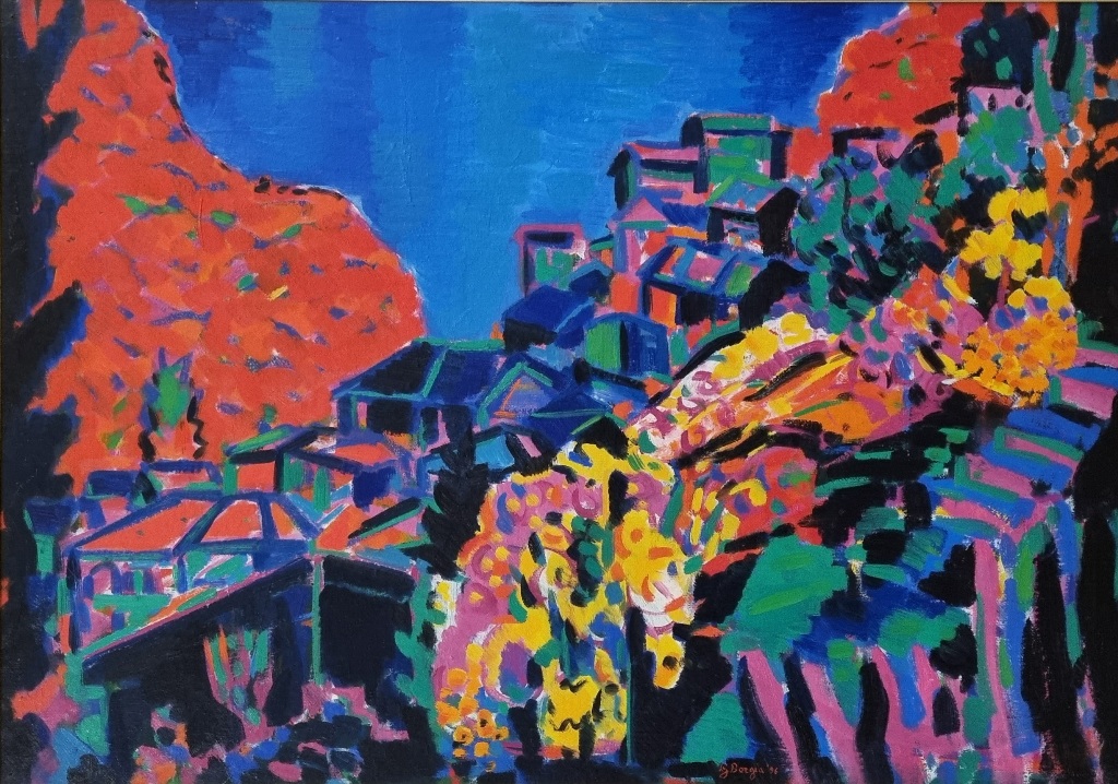 BORGIA GIANCARLO Milano 1958-Firenze 2002 "Autunno" olio su tela cm 70x100 del 1996. Firmato e datato sul fronte in basso al centro. Sul retro titolo,luogo, data, firma, timbro ed etichetta descrittiva della Galleria d'arte Cafiso. Autentica su foto a cura dell'artista.