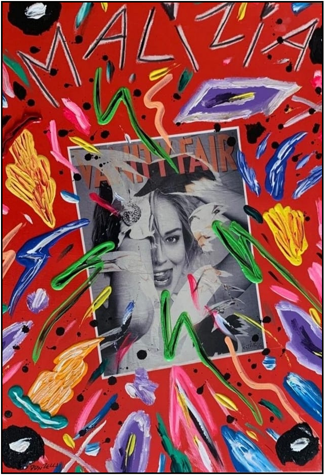 DONZELLI BRUNO Napoli 1941 “Malizia” acrilico e collage su tela cm 50x70. Firmato sul fronte in basso a destra. Sul retro firma e titolo. Autentica su foto.