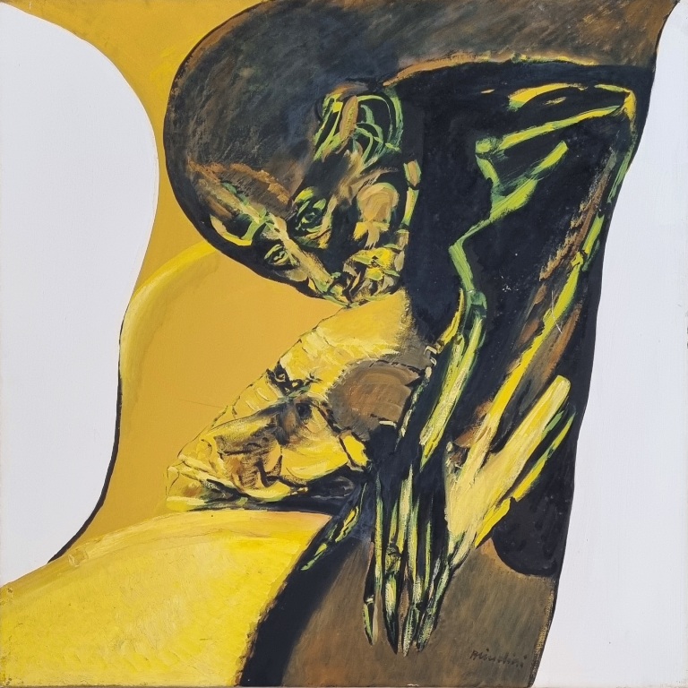 BRINDISI REMO Roma 1918-Lido di Spina 1996 "Conforto del vittorioso" olio su tela cm 70x70 del 1972. Firmato sul fronte in basso a destra. Sul retro firma, titolo, data e dedica. Certificato di provenienza a cura della Finarte. Si ringrazia l’archivio per il riscontro dell’opera.