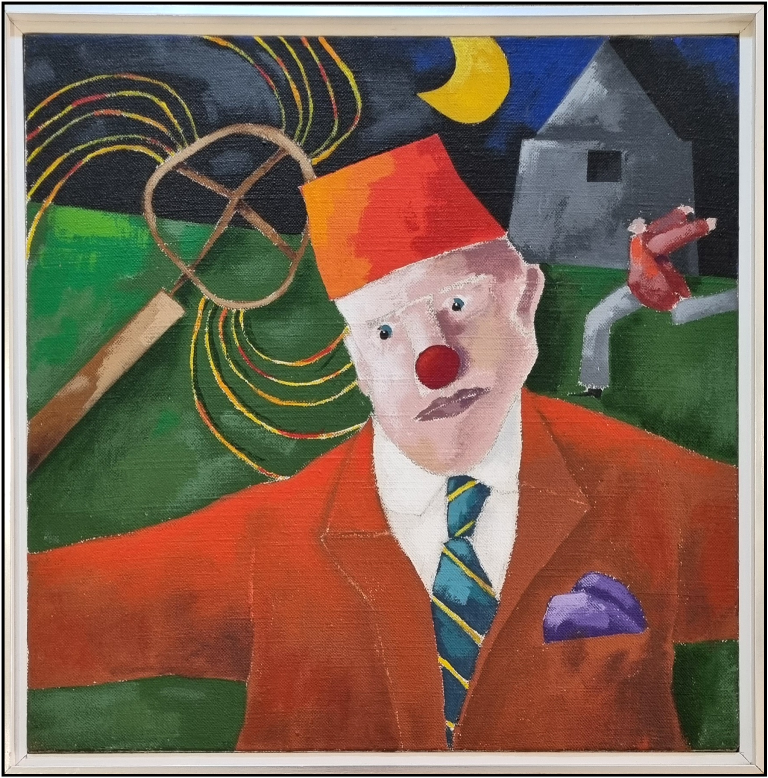 TADINI EMILIO Milano 1927-2002 "L’uomo dei fuochi d’artificio” acrilici su tela cm 50,5x50,5 del 1987. Sul retro firmata ed intitolata. Autentica su foto a cura dello Studio Marconi.